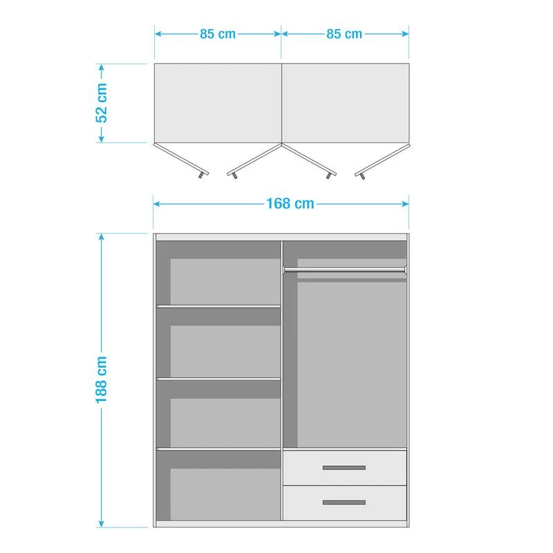 - Contenu de la livraison : armoires à portes battantes avec équipement intérieur, sans décoration