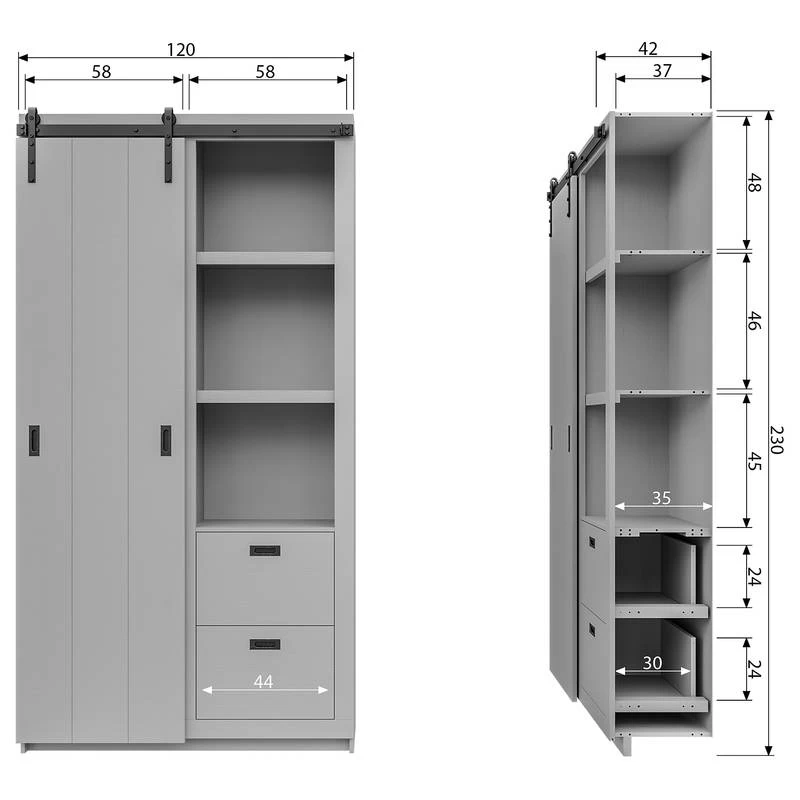 - Dimensions intérieures du tiroir : 44 x 24 x 30 cm chaque