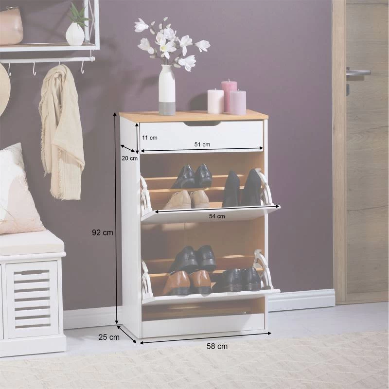 - Contenu de la livraison : 1 x BASIL Meubles à chaussures, 2 abattants/1 tiroir